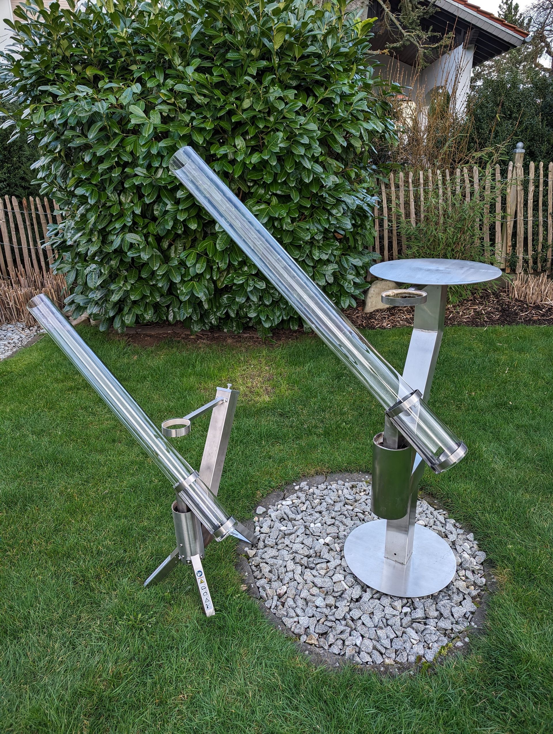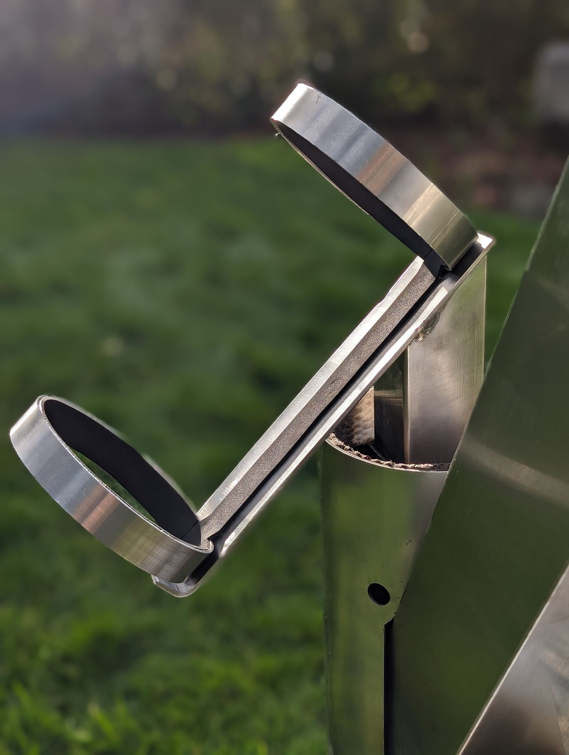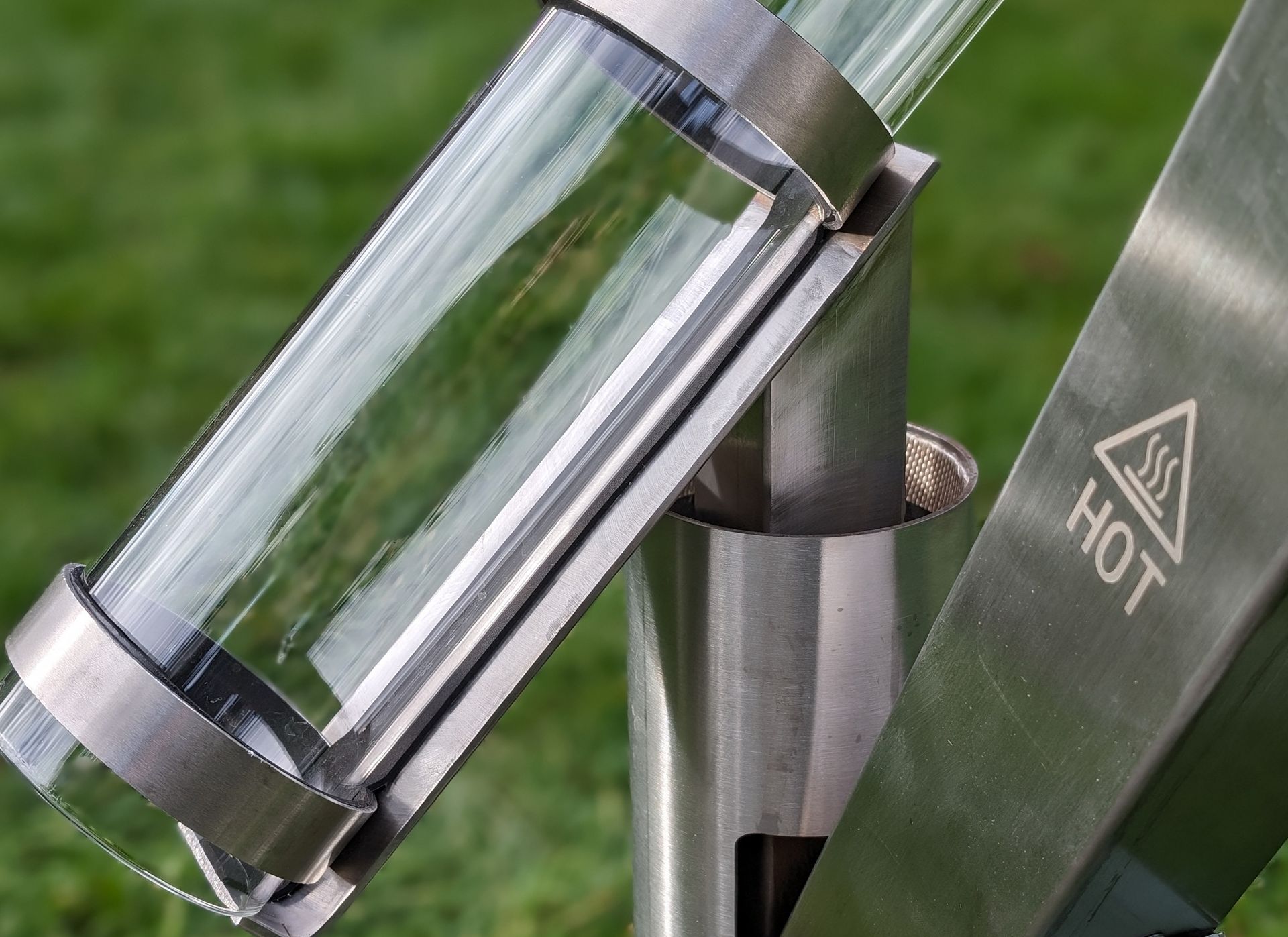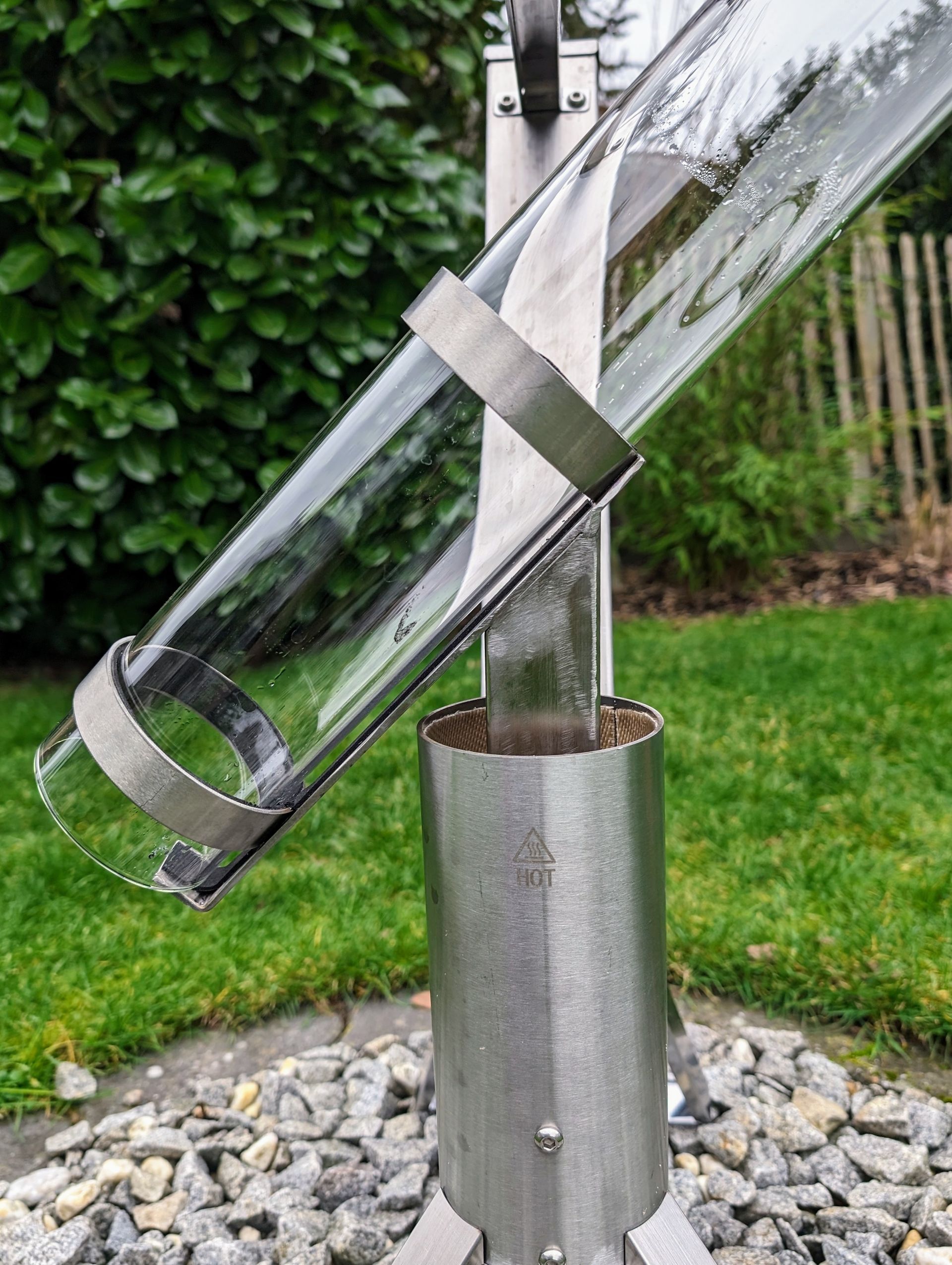 Die Glasrohre der Rhönfackel setzen beim Gebrauch Ruß an und sollten regelmäßig gereinigt werden, um ein schönes Flammbild zu gewährleisten. Dank der Halterung, die das Glas sicher in einem 45-Grad-Winkel fixiert, lassen sich Reinigungsmittel und Bürste bequem einführen, das Glasrohr gründlich reinigen und anschließend ausspülen.